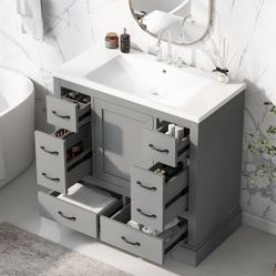 Assembled New Assembled New 36" Bathroom Vanity with Sink Free Standing Single Basin Vanity Set with 6 Drawers$295Santa Fe Springs, CA
