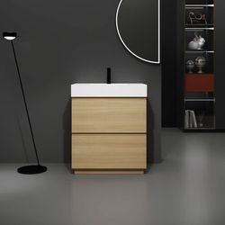 30” Oak Single Sink Freestanding Bath Vanity with White Resin Top [NEW] **Assembly Req** $300Hacienda Heights, CA