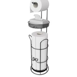 Freestanding Toilet Paper Holder with Shelf – Modern Black Wire Organizer for Bathroom Storage, Holds 4 Rolls with Extra Top Tray for Essentials – Stu$9Beverly Hills, CA