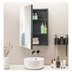 Medicine Cabinet with Light (Full Assembled), 16''x22'' LED Lighted Bathroom Mirror with Storage, Smart Anti-Fog, Aluminum Wall Mounted White $70Brea, CA