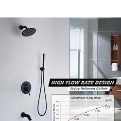 gotonovo Tub Shower Faucet Set Shower Head and Handle Set 6 Modes 6 inch Bathroom Trim Black e, C15B Br$40Santa Fe Springs, CA