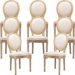 French Country Dining Chairs Set of 8, Vintage Linen Fabric with Round Back and Solid Rubberwood Leg, Farmhouse Chairs for Dining, Living, Kitchen, Be$399Rosemead, CA