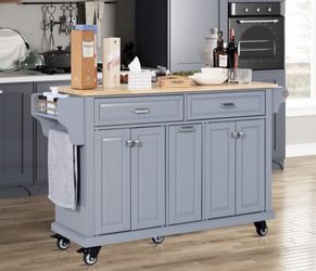 60” Gray Kitchen Island Cart w/ Open Shelves / Storage Cabinets / Spice Rack / Towel Rack [NEW] **Retails For $435 <Assembly Required> $150Whittier, CA