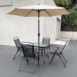 (Brand New) $140 Patio 6 Piece Outdoor Set with 32x32” Table, 4pc Folding Chairs and 10 FT Tilt Umbrella $140Montebello, CA