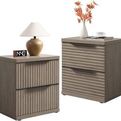 Fluted Night Stand Set 2 - Modern Nightstand with 2 Large Drawers, 22 Inch Wide Bedside Table for Bedroom, Mid Century Bed Side Tables Bedroom, Grey A$125Arcadia, CA