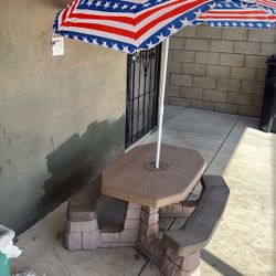 Patio Furniture Set - Outdoor table with umbrella and four chairs.$350Arcadia, CA