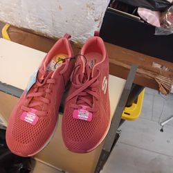 These are a pair of rose-colored Skechers Arch Fit Big Appeal walking shoes. $50Los Angeles, CA