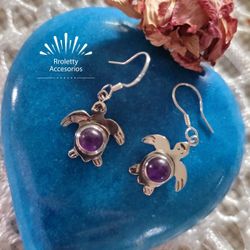 Sterling Silver 925 Earrings Turtle Design With Amethyst Stone $20Downey, CA
