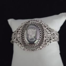 Vintage Whiting And Davies Cameo Filigree Hinged Bangle Bracelet $45Glendale, CA