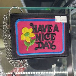 Nice Day Vegan Leather Wallet With Chain Vintage Patch $10Orange, CA