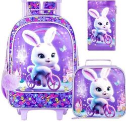 Rolling Backpack For Girls, Cute Rabbit Roller Wheels Kids Bookbag - Wheeled Elementary School Bag - 3PCS Rabbit new selling for only $30$30Long Beach, CA