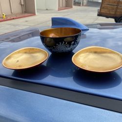Antique Chinese Foochow Gold Lacquer Bowl with Goldfish and 2 flower dishes$50Los Angeles, CA