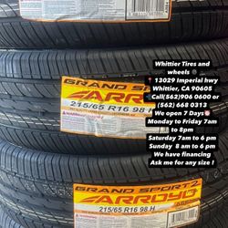215/65R16 ARROYO SET OF NEW TIRES , INCLUDING MOUNTING AND BALANCING. ASK ME FOR ANY SIZE OR BRAND, WE HAVE THE BEST PRICES OF CALIFORNIA$330Long Beach, CA