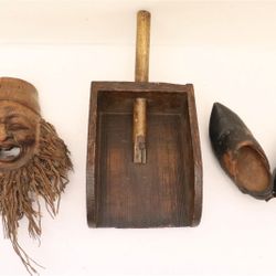 Antique Chinese Bamboo Mask Wooden Dutch Clogs Wood Wheat Scooper Wall Hangings$128Whittier, CA