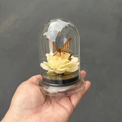 Vintage Butterfly Taxidermy & Yellow Rose Floral Glass Dome Cloche Figurine 70s$5Brea, CA
