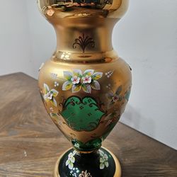 ANTIQUE - Bohemia Gold Gilt Glass Vase - Large - Green With Flowers - Czech Rep$150Downey, CA