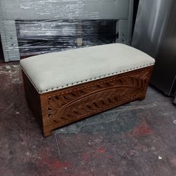 Hand-carved Wood Storage Trunk Bench W/ Upholstered Top $95Los Angeles, CA