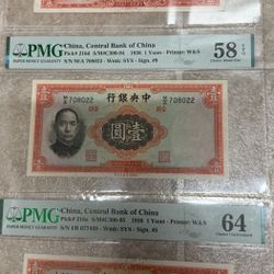 3 X 1936 China – Central Bank of China – 1 Yuan Notes$250Tustin, CA