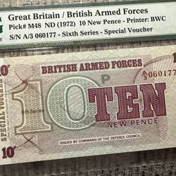 ND (1972) Great Britain – British Armed Forces 10 New Pence – Special Voucher PMG 66 – Gem Uncirculated$65Tustin, CA
