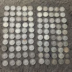 100 Roosevelt Mercury Dime Lot 90% Silver 2 Rolls$625Anaheim, CA