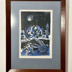 Vintage Original Color Woodcut Print "Harbor in Brittany" by JOHN ROSS 16"x12"$220Los Angeles, CA