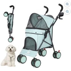 4 Wheels Pet Stroller, Easy-Fold Puppy Cage Jogger Stroller with Sun Cover, Pad and Rear Storage Bag, Breathable and Visible Mesh for Small/Medium Pet$60Santa Ana, CA