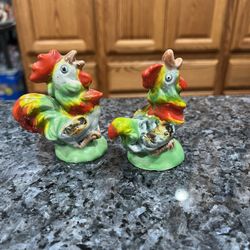 Vintage Ceramic Old Colorful Rooster pair of Salt and Paper shakers. Size approximately 3 1/4 inches tall. Made in Japan. Preowned no stoppers. Ha$25Artesia, CA