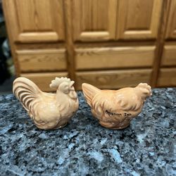 Ceramic Vintage Rooster And Hen Pair of Salt Pepper Shakers. Preowned Missing Stoppers $12Artesia, CA