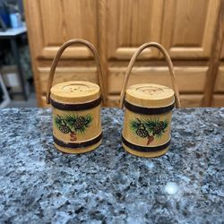 Vintage Wooden Salt and Pepper Shakers Buckets with Handles Pinecones. Preowned Minor paint Wear. See Pictures $15Artesia, CA