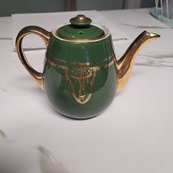 TEAPOT Vintage Hall's China Teapot, 1940s-1950s, Pea Green w/ Gilt Accents 32oz$100Los Angeles, CA