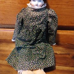 Antique KPM Style China Doll Leather Body Porcelain Still With Tag Germany .