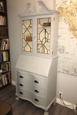 Vintage secretary desk and cabinet with locking key and all wood.$120Huntington Beach, CA