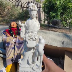 Blanc De Chine Porcelain Quan Yin Deer Goddess Statue With Deer Table Lamp.$150Hacienda Heights, CA