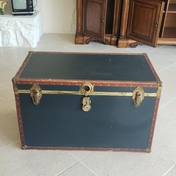 Trunk Antique Steam Ship Travel Trunk Center Piece Storage Petroleum Blue With Cloth Interior $80Crystal City, CA