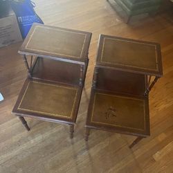 Antique Cherrywood 2-Tier Leather Top End Tables w/Bamboo Motif $70Los Angeles, CA