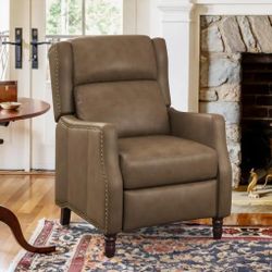 New 28in. W, Grayish Brown Genuine Leather Nailhead Trim Recliner Armchair with Cushioned Back and Wooden Legs$135City Of Industry, CA