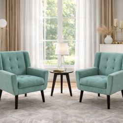 Set Of 2 Mint Green Square Arm Armchairs / Accent Chairs [NEW] **Retails For $350+ ($120Hacienda Heights, CA