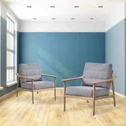 Set Of 2 - Natural Wood Armchairs w/ Gray Linen Cushions [NEW IN BOX] **Retails for $300$160City Of Industry, CA