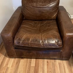 Restoration Hardware Leather Oversized Armchair – Vintage Cigar Brown ✨$250Newport Beach, CA