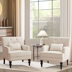 Set of 2 Modern Accent Chairs with Lumbar Pillows – Button Tufted Armchairs, Solid Wood Legs, 400 lbs Capacity $439Los Angeles, CA