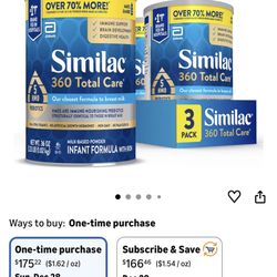 Similac 360 Total Care Infant Formula 36-oz Value Can, Pack of 3$130West Covina, CA
