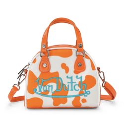 Von Dutch Orange Cow Print Vegan Pony Hair Bowling Bag$100Arcadia, CA