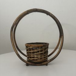 Vintage Boho MCM Jungalow Farmhouse Bamboo Rattan Flower Plant Basket $60Whittier, CA