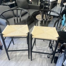 Set Of 2, 26'' Wishbone Counter Stool Weave Bar Stool Mid-Century Modern Metal Barstool Counter-Height Stool Slat Backrest Dining Chair, Black$120San Gabriel, CA