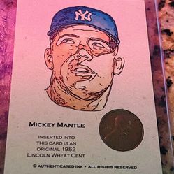 Mickey Mantle RARE Gypsy Oak 1952 Lincoln Wheat Cent Thick Baseball Card$75Glendale, CA