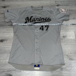 Chiba Lotte Marines Japanese Baseball Jersey Game Issued Player Worn Mike Fyhrie Mens XXL Gray Descente$649Santa Ana, CA
