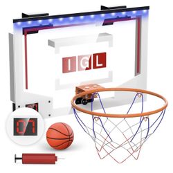 IGL Mini Basketball Hoop Indoor, Over The Door Basketball Hoop Outdoor Wall Mounted with Electronic Scoreboard, Music, LED Lighting and Ball/Pump for $28El Monte, CA
