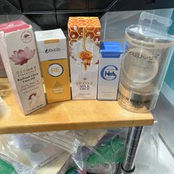 Set of skincare and beauty products including serums and makeup blender. Features vibrant packaging. New in boxes. See pictures $20Bell Gardens, CA