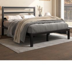 14 Inch Full Size Metal Platform Bed Frame with Wooden Headboard and Footboard, Mattress Foundation, No Box Spring Needed, Large Under Bed Storage, No$119Downey, CA
