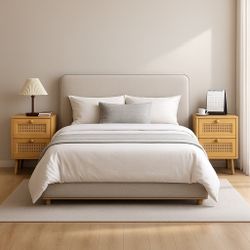 New Set of 2 Rattan Nightstand,Boho and Wood Night Stand with Drawers,Bedside Rattan Table and Small nightstand,Natural Wood Nightstand for Bedroom,Oa$90La Mirada, CA
